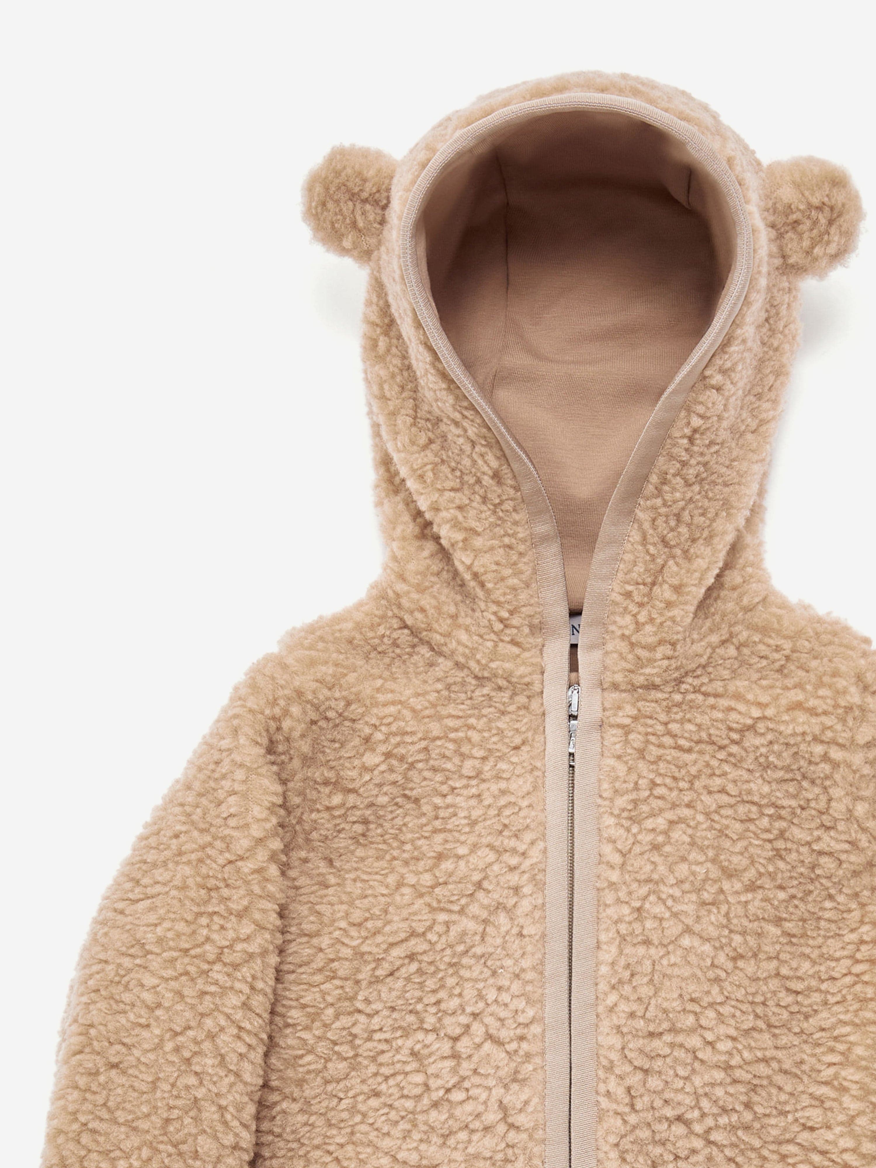 Inspired by your baby's favorite teddy bear, this plush hoodie features little ears on the hood.