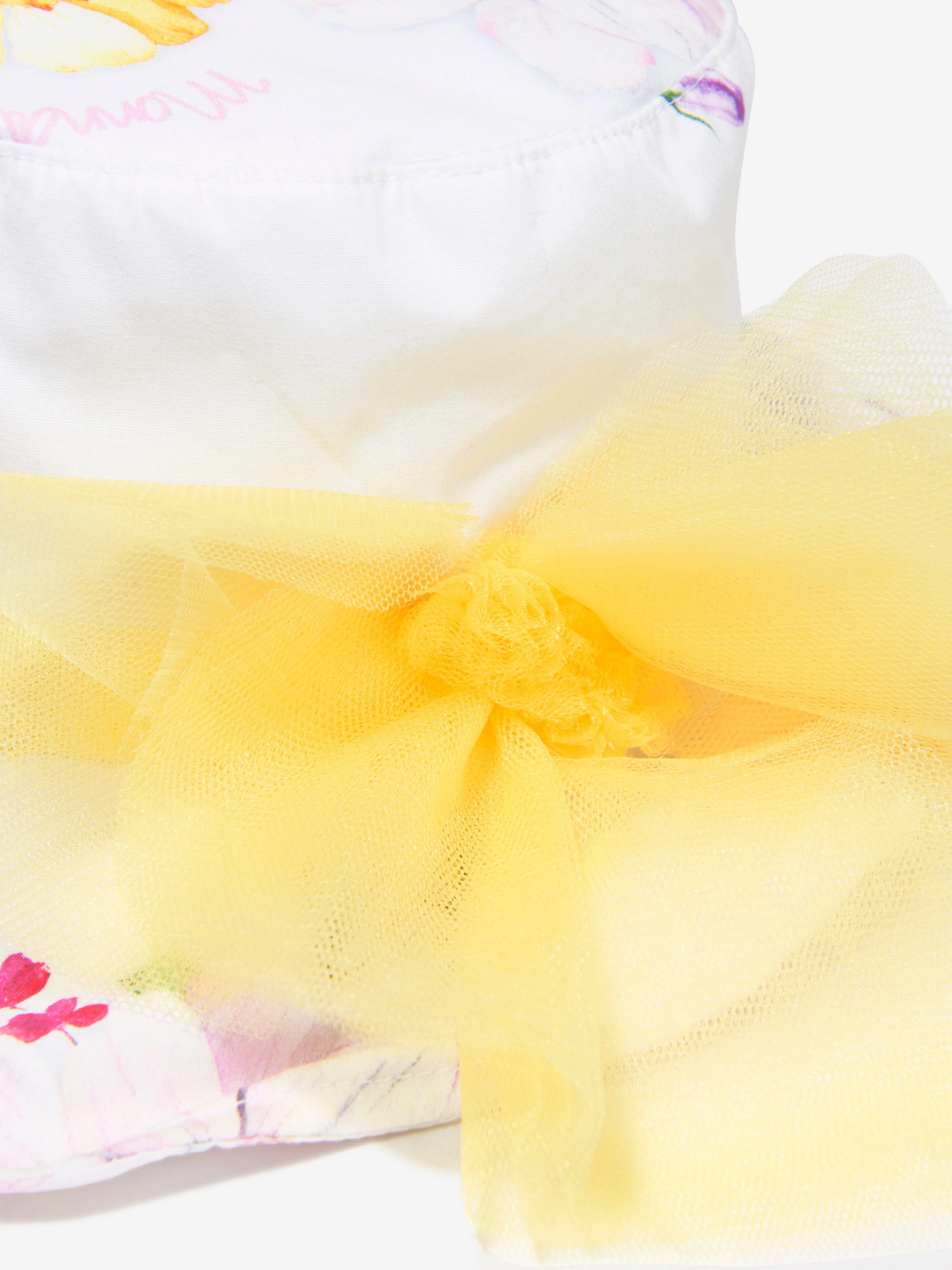 Monnalisa Girls Floral Print Hat in White—