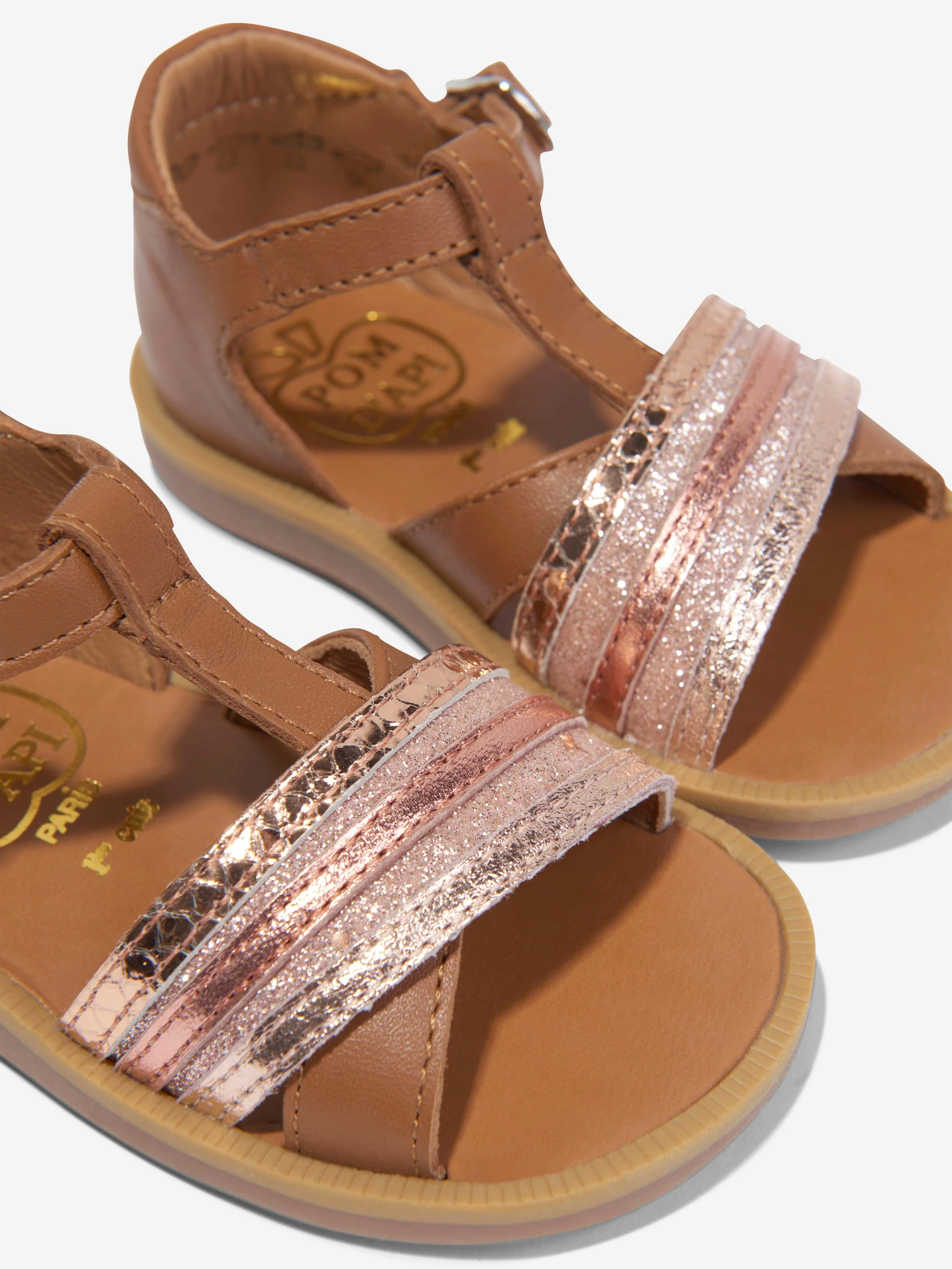 Pom D'Api Girls Leather Poppy Lili Sandals in Camel—