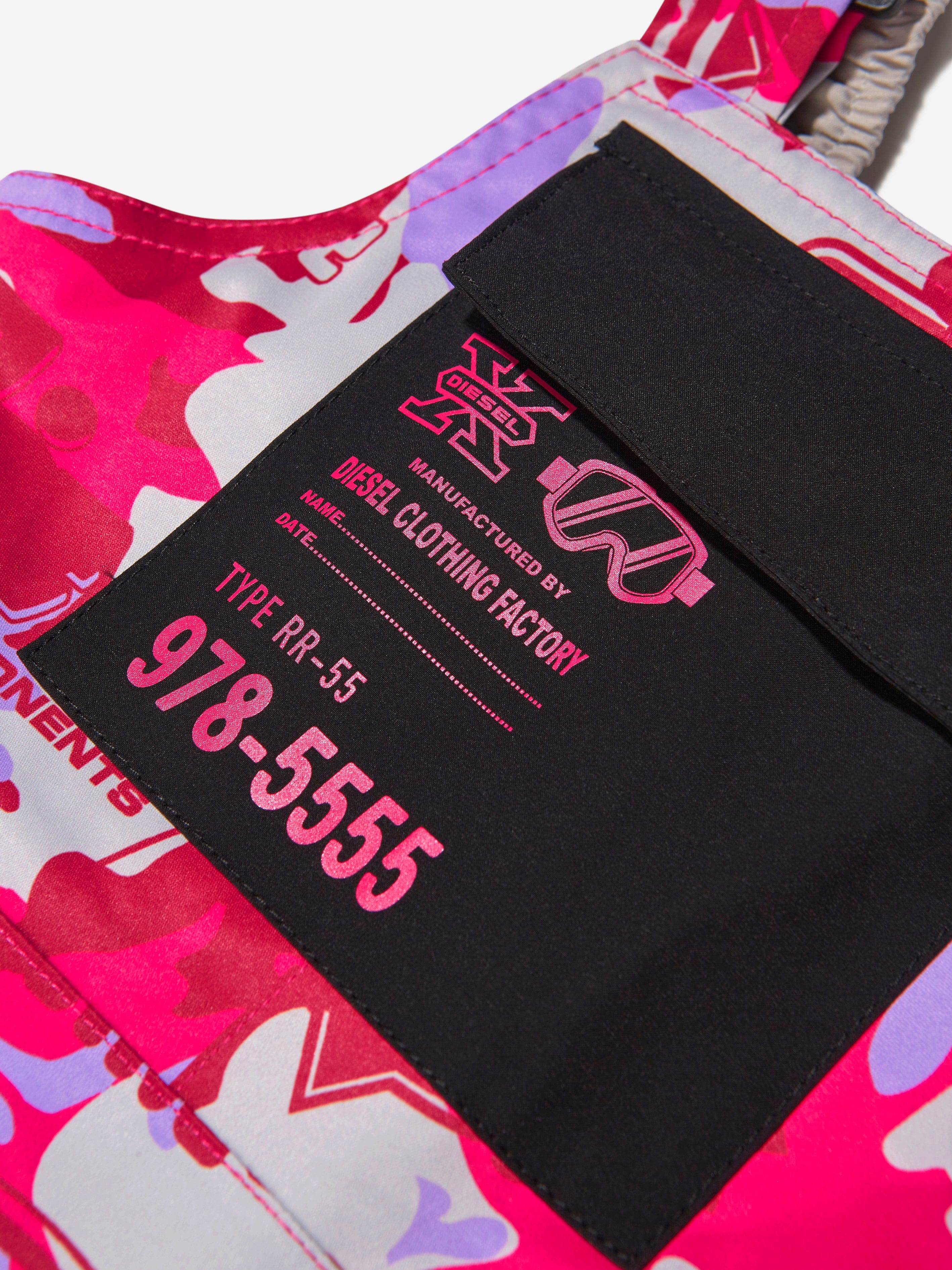 Presenting the Girls Racing Print Ski Salopettes by Diesel in a captivating pink colour, a luxurious addition for your girl's snow-ready ensemble! Its key features are: